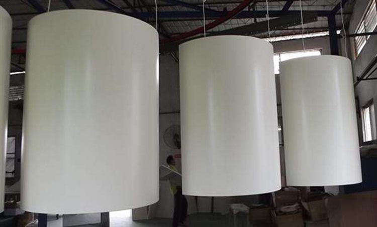 弧形铝单板铝天花以高等级铝合金为主要材料,经过模压成型等多种加工工艺处理,再经表面处理(喷粉,聚酯漆,氟碳漆,热转印木纹,热转印大理石纹)精制而成。氟碳涂层按加工工艺分为二涂一烤,三涂一烤和三涂二烤,铝单板表面涂层性质严格按客户要求,颜色可由公司负责提供色卡供客户选择。